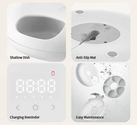 — Shallow dish design, avoid accidental contact with pets’ whiskers, and leave no food residue
